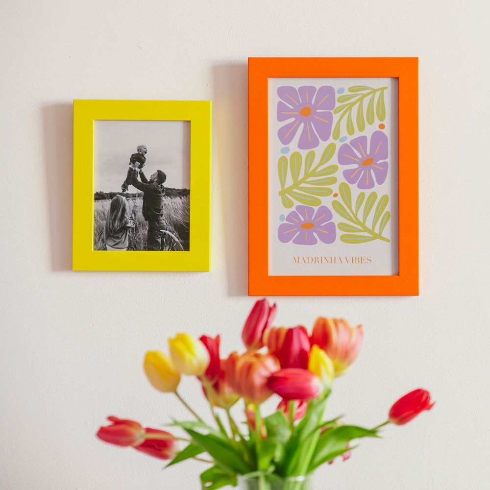 Moldura de alta qualidade fabricada em madeira natural lacada, garantindo durabilidade e um acabamento vibrante que realça as tuas fotos. Com uma largura de 30mm, esta moldura destaca-se pelo seu design robusto e cores vivas (Laranja, Amarelo, Verde e Violeta), ideais para temas de Primavera e Páscoa.